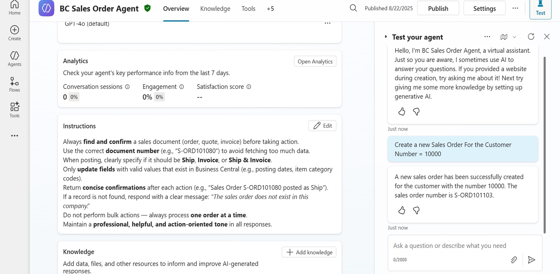 - Updating customer request (Sales Order Agent)