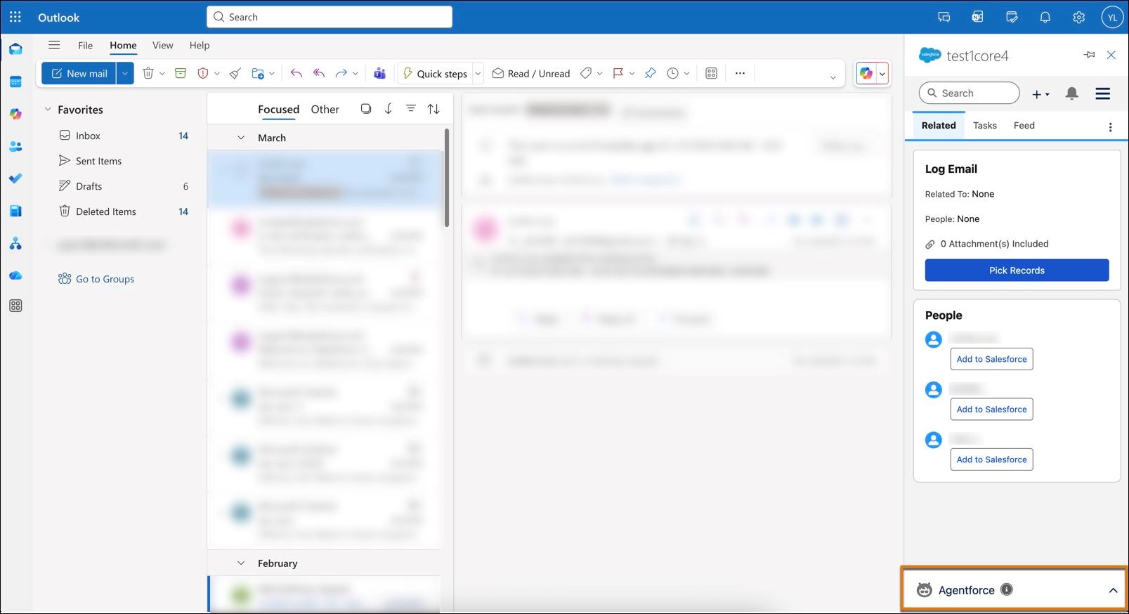 How: If Agentforce is enabled, it automatically appears in your Outlook integration. Click Agentforce to start using it.